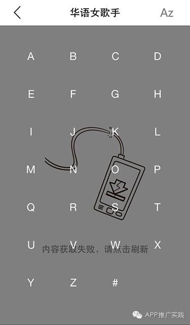 ④ “歌手”就要求用户主动发现音乐了,将歌手按照华语、日韩、欧美三个项分类,每个分类下都有当前的热门搜索歌手,歌手可以按照首字母进行选择,这里有一个小编比较喜欢的地方,不同于其他音乐APP的字母收缩排列在界面右侧,经常会点击错误,《爱听4G》则利用了窗口弹出式的方法将这个功能独立出来,操作非常方便。