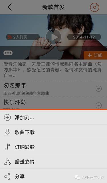 ①作为一款音乐APP,音乐发现应该是最重要的功能之一,“发现“实现了音乐的被动发现功能,定期的内容更新,让用户每次打开APP,都不用愁听什么歌,对于喜欢的板块还可以订阅,更新早知道,此外,收藏歌单以及分享功能都是被包含的。