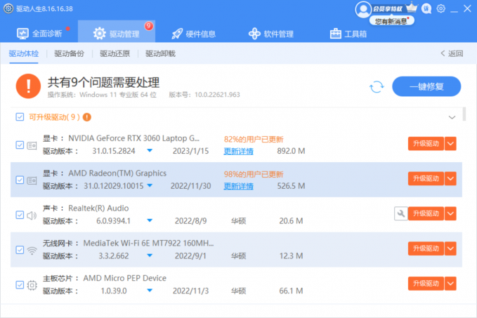 也可以选择借助工具自动完成包括显卡在内的所有驱动更新。