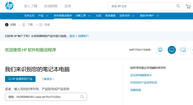 3、另外,您也可以在通过制造商的官方网站下载声卡驱动,以惠普官网为例,输入您的电脑型号和操作系统。