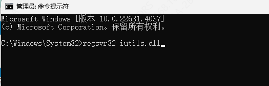 2、在命令提示符中输入regsvr32 iutils.dll然后按Enter键。如果注册成功,会看到一条提示信息。