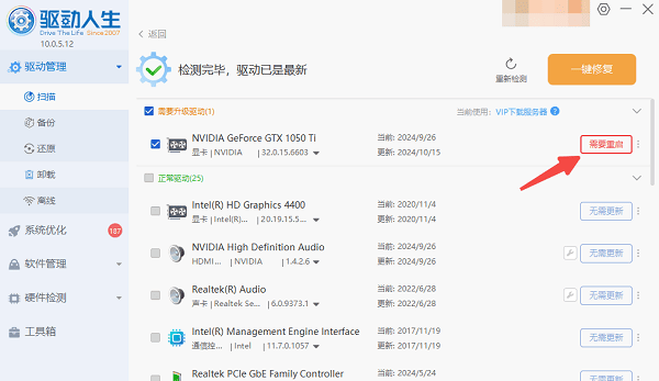 为了帮助广大用户更高效地享受本次更新带来的优势,驱动人生提供了一种简单快捷的方式来检查并安装最新的NVIDIA显卡驱动程序,建议大家优先选择。