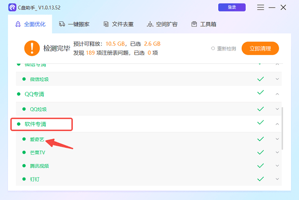 为了帮助你更高效地清理爱奇艺缓存,推荐你使用百贝C盘助手来解决。它专为清理系统盘空间而设计,支持智能识别各类软件的缓存路径,包括爱奇艺、腾讯视频、钉钉等热门软件。