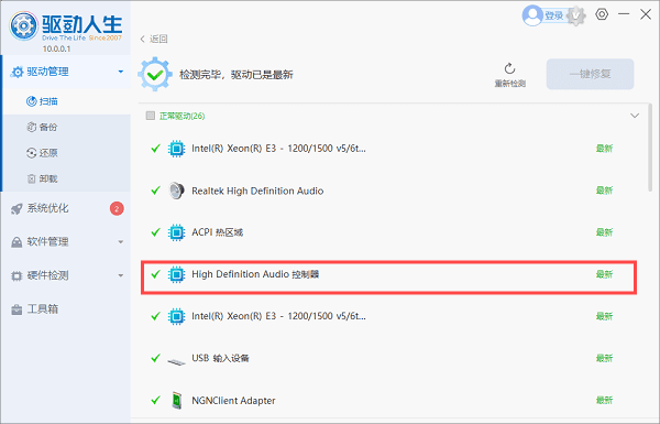声卡驱动程序是电脑与音响之间通信的桥梁。如果驱动程序出现问题,可能会导致音响无法正常工作。推荐您可以使用驱动人生10来自动扫描并修复异常的驱动程序,包括声卡驱动。